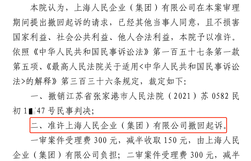日照胜诉佳讯 | 人民企业系列案苏州六案上海人民公司撤诉