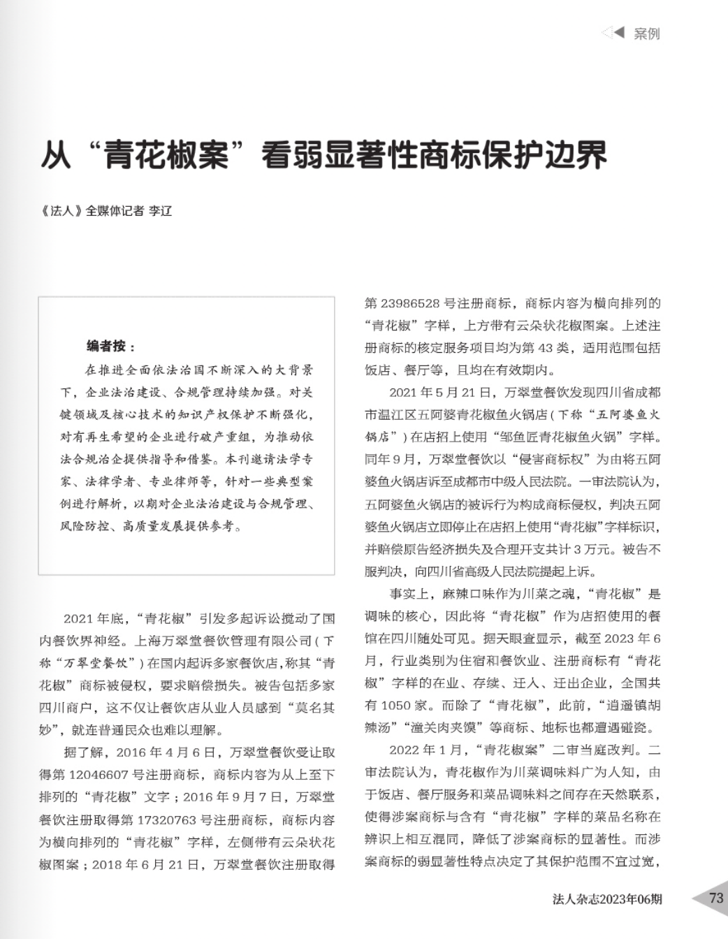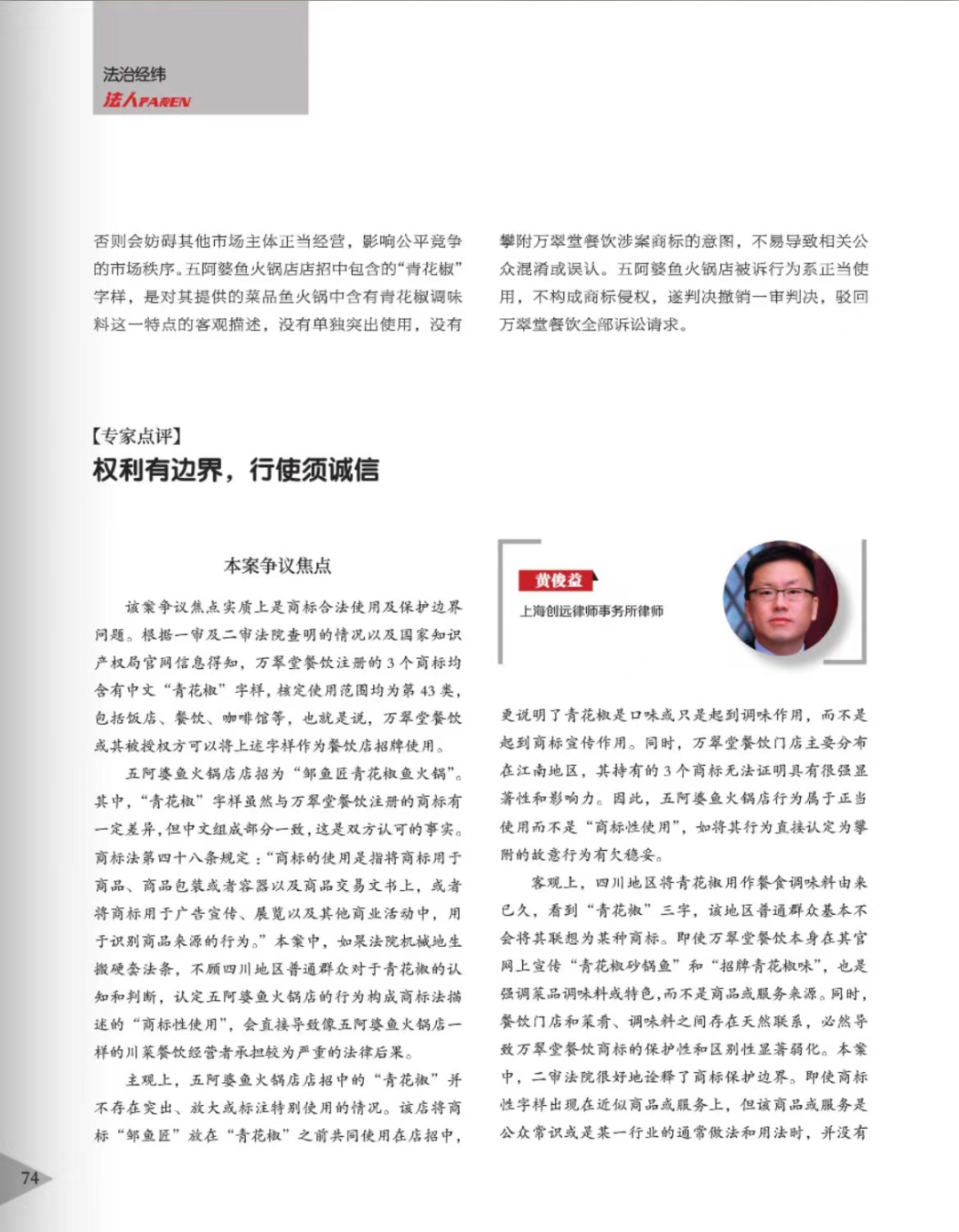 日照辉知简讯 | 辉知队黄俊益律师应“法治日报”旗下杂志邀请,就“青花椒”案发表专家点评